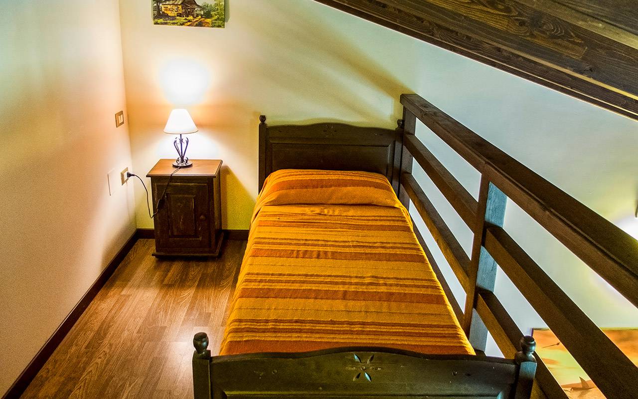 Viene considerata la nostra suite, con il tetto in legno a vista che gli conferisce un’atmosfera unica. Situata al primo piano con ingresso autonomo che si affaccia direttamente su una stupenda terrazza con portico. Dotata di un letto matrimoniale e due letti singoli, tutti in legno massello, come anche il resto dell’arredamento. La stanza è munita di un pittoresco soppalco accessibile attraverso una simpatica scala in legno. Provvista di un angolo cottura accessoriato, costituito da un mobile in legno con all’interno una cucinetta rivestita con piastrelle di ceramica. Bagno privato, aria condizionata. Esposizione ad Est.